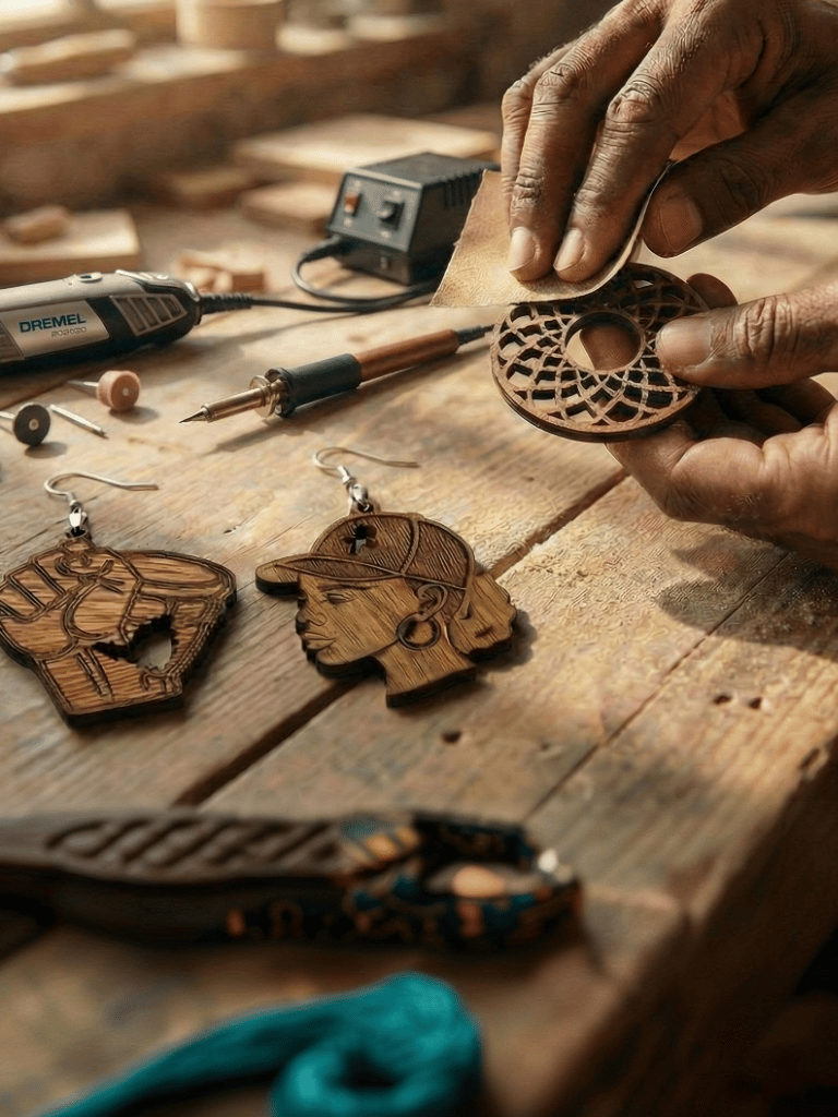 Delve into our curated assortment of handcrafted wooden earrings, each piece a blend of tradition and trend. Discover the perfect accessory that speaks to your style in our diverse, artisanal collection.